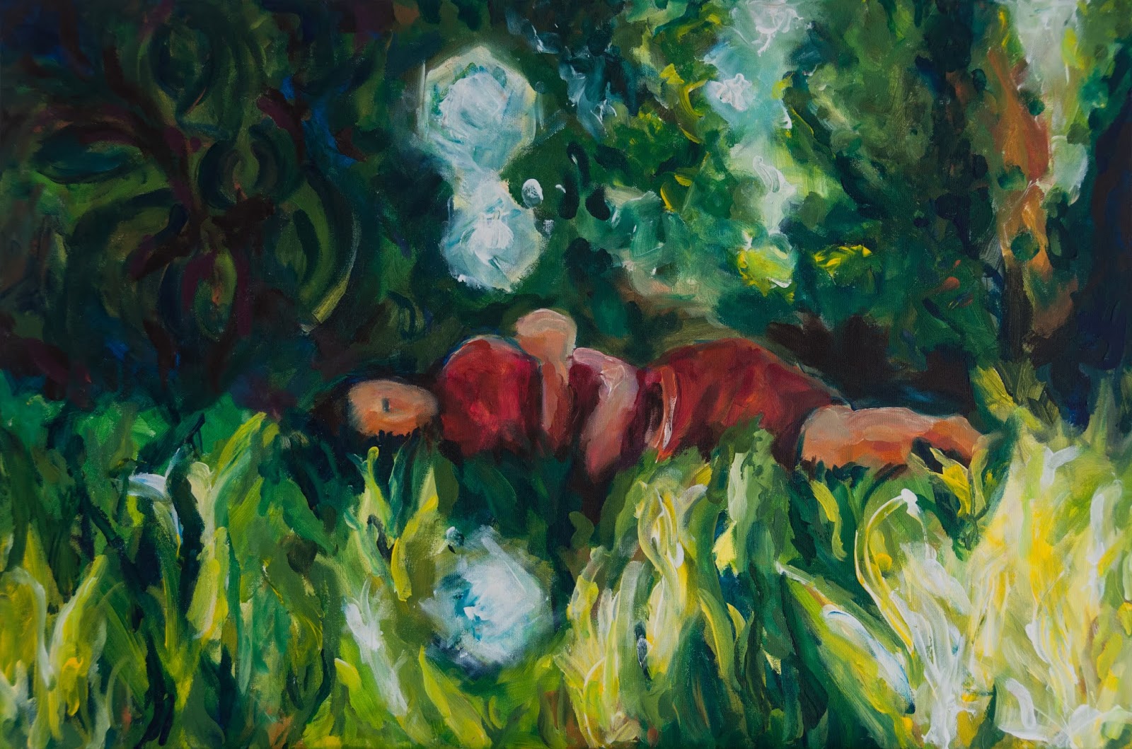I paint with my fingers, brushes and butter knives. Painting is true play for me. A real tactile sensation. I paint because I feel the urge to. It alleviates frustration.
